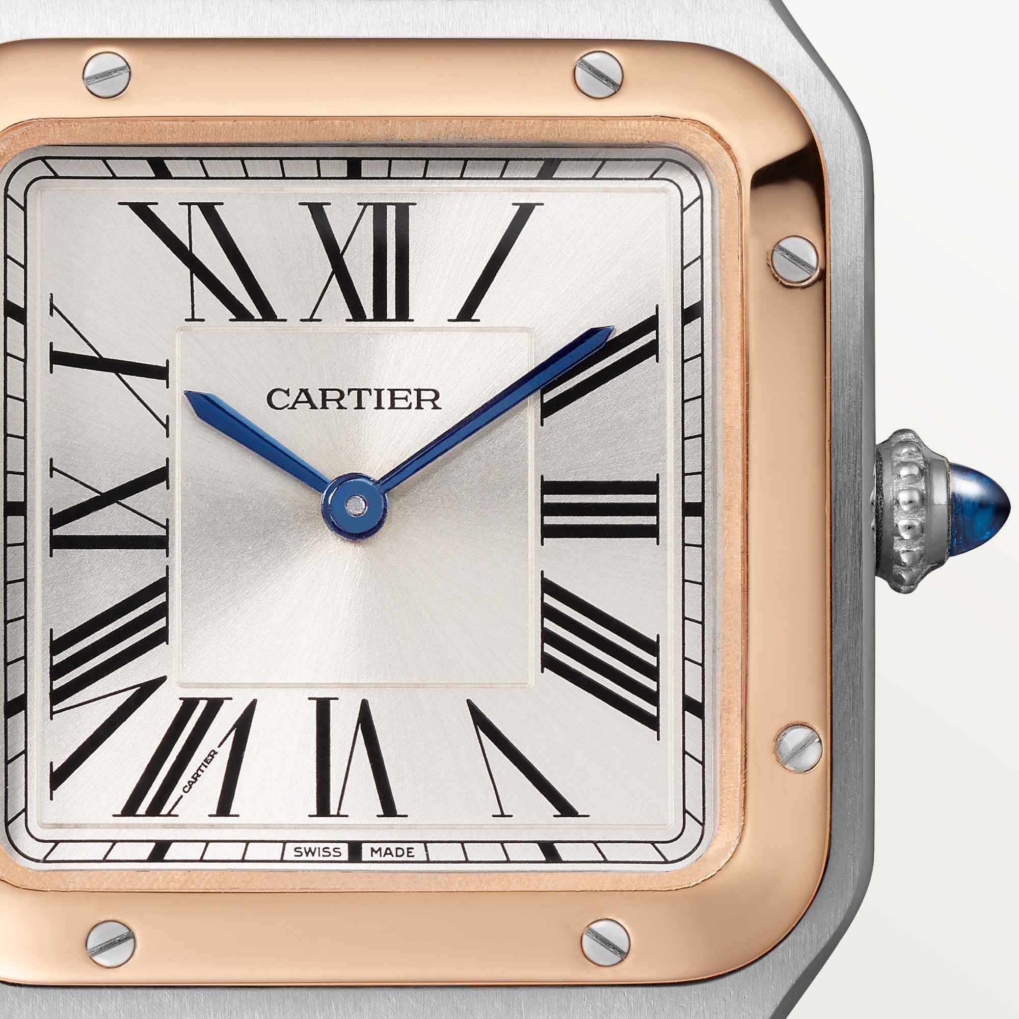 Ref. W2SA0038 - 1904 - Louis Cartier erfüllt den Wunsch des berühmten brasilianischen Fliegers Alberto Santos Dumont: während des Fliegens die Zeit ablesen zu können. So hat eine der ersten Armbanduhren das Licht der Welt erblickt und die Freundschaft zwischen zwei Pionieren besiegelt. Ihr Zifferblatt mit den abgerundeten Ecken, die harmonisch gewölbten Bandanstöße und die markanten Schrauben zeichnen eine legendäre Uhr aus, die in vielerlei Varianten reinterpretiert werden wird.