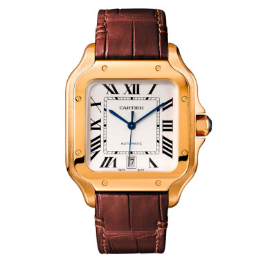 Ref. WGSA0029 - 1904 - Louis Cartier erfüllt den Wunsch des berühmten brasilianischen Fliegers Alberto Santos Dumont: während des Fliegens die Zeit ablesen zu können. So hat eine der ersten Armbanduhren das Licht der Welt erblickt und die Freundschaft zwischen zwei Pionieren besiegelt. Ihr Zifferblatt mit den abgerundeten Ecken, die harmonisch gewölbten Bandanstöße und die markanten Schrauben zeichnen eine legendäre Uhr aus, die in vielerlei Varianten reinterpretiert werden wird.