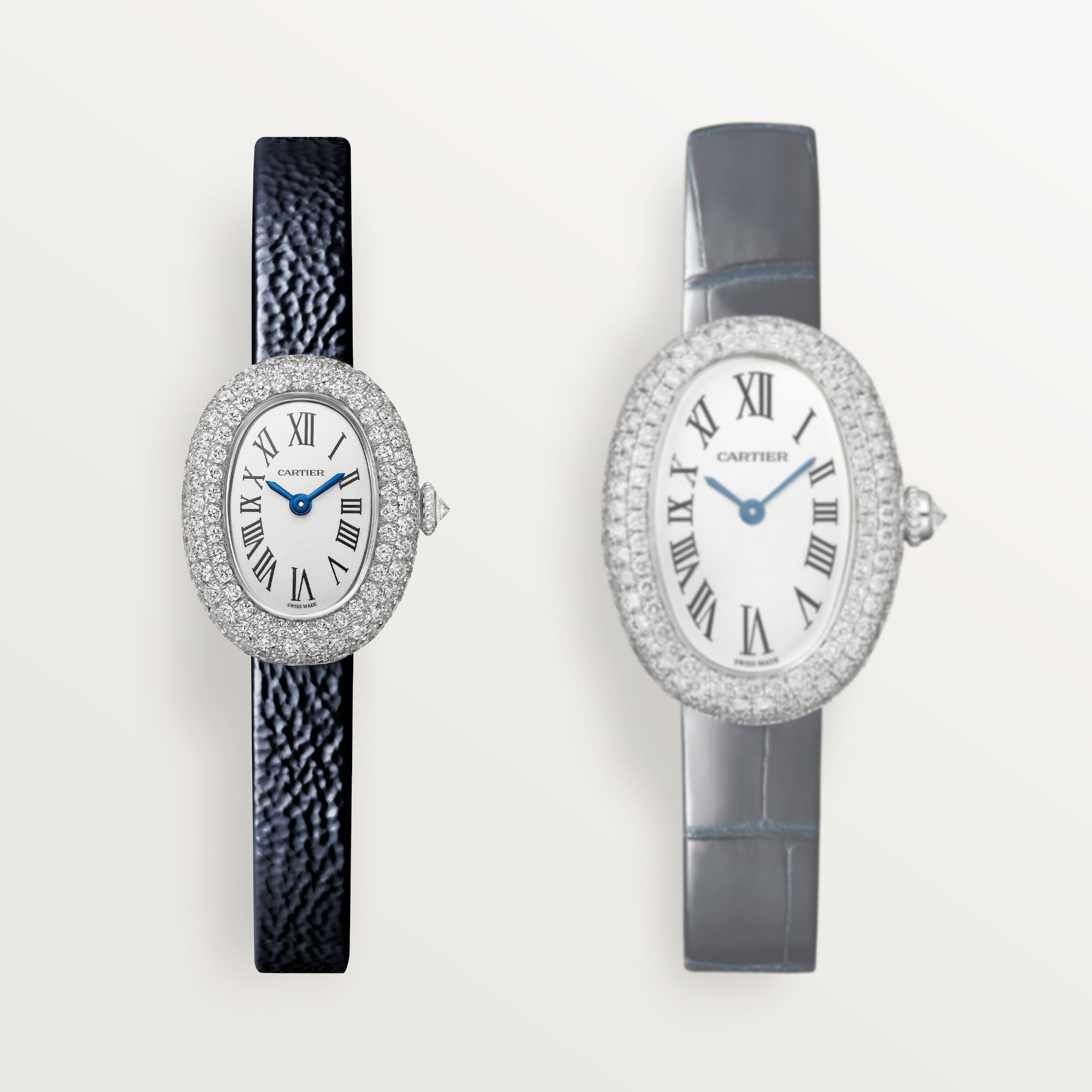 Mini-Modell, Quarzwerk, Weißgold, Diamanten, Leder