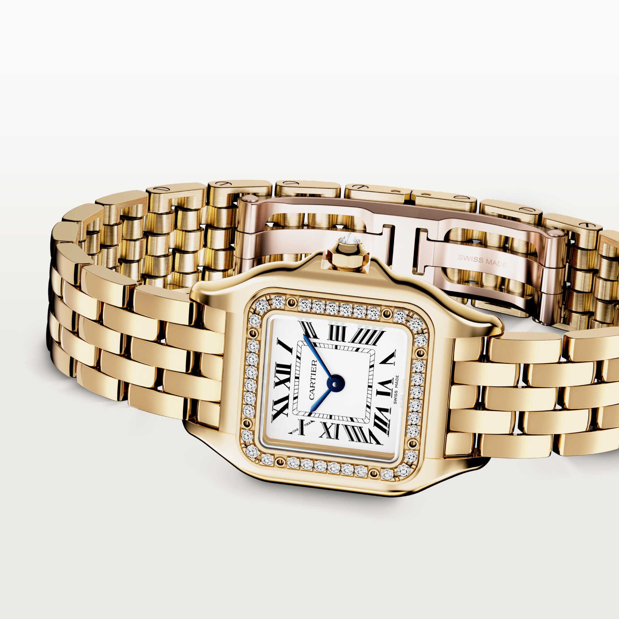 Ref. WJPN0086 - Die Panthère de Cartier ist Uhr und Schmuckstück zugleich und zeigt sich in einem der legendärsten Designs der Maison. Auch wenn sie bereits in den 1980er Jahren entworfen wurde, ist sie heute moderner denn je und ein wahres modisches Must-have für Damen, die einen raffinierten Stil pflegen