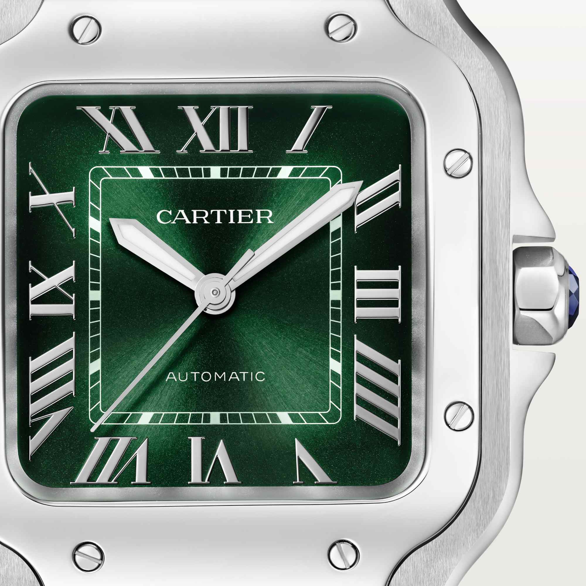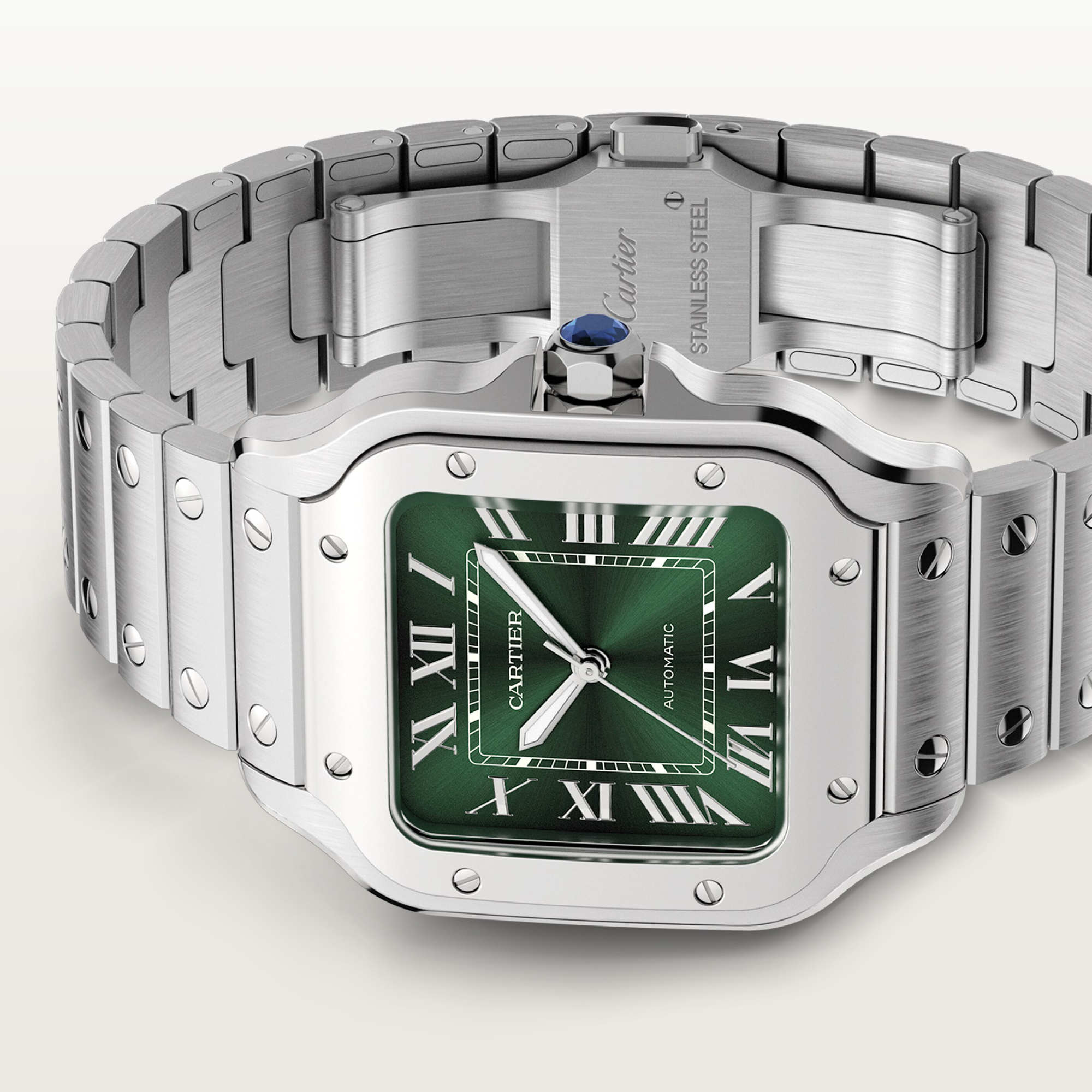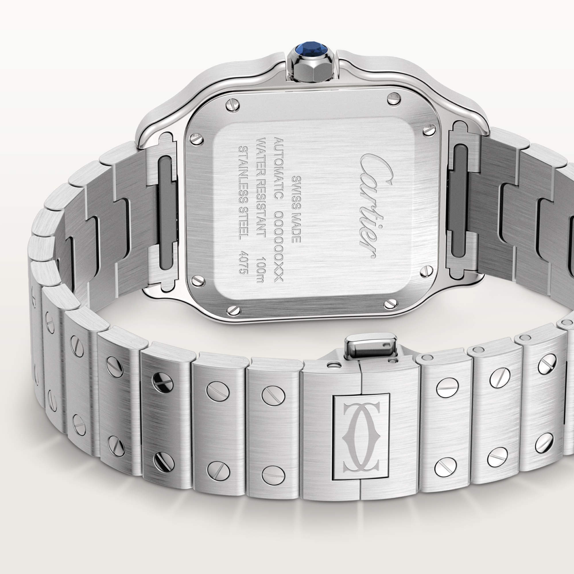 Ref. WSSA0061 - 1904 - Louis Cartier erfüllt den Wunsch des berühmten brasilianischen Fliegers Alberto Santos Dumont: während des Fliegens die Zeit ablesen zu können. So hat eine der ersten Armbanduhren das Licht der Welt erblickt und die Freundschaft zwischen zwei Pionieren besiegelt. Ihr Zifferblatt mit den abgerundeten Ecken, die harmonisch gewölbten Bandanstöße und die markanten Schrauben zeichnen eine legendäre Uhr aus, die in vielerlei Varianten reinterpretiert werden wird.