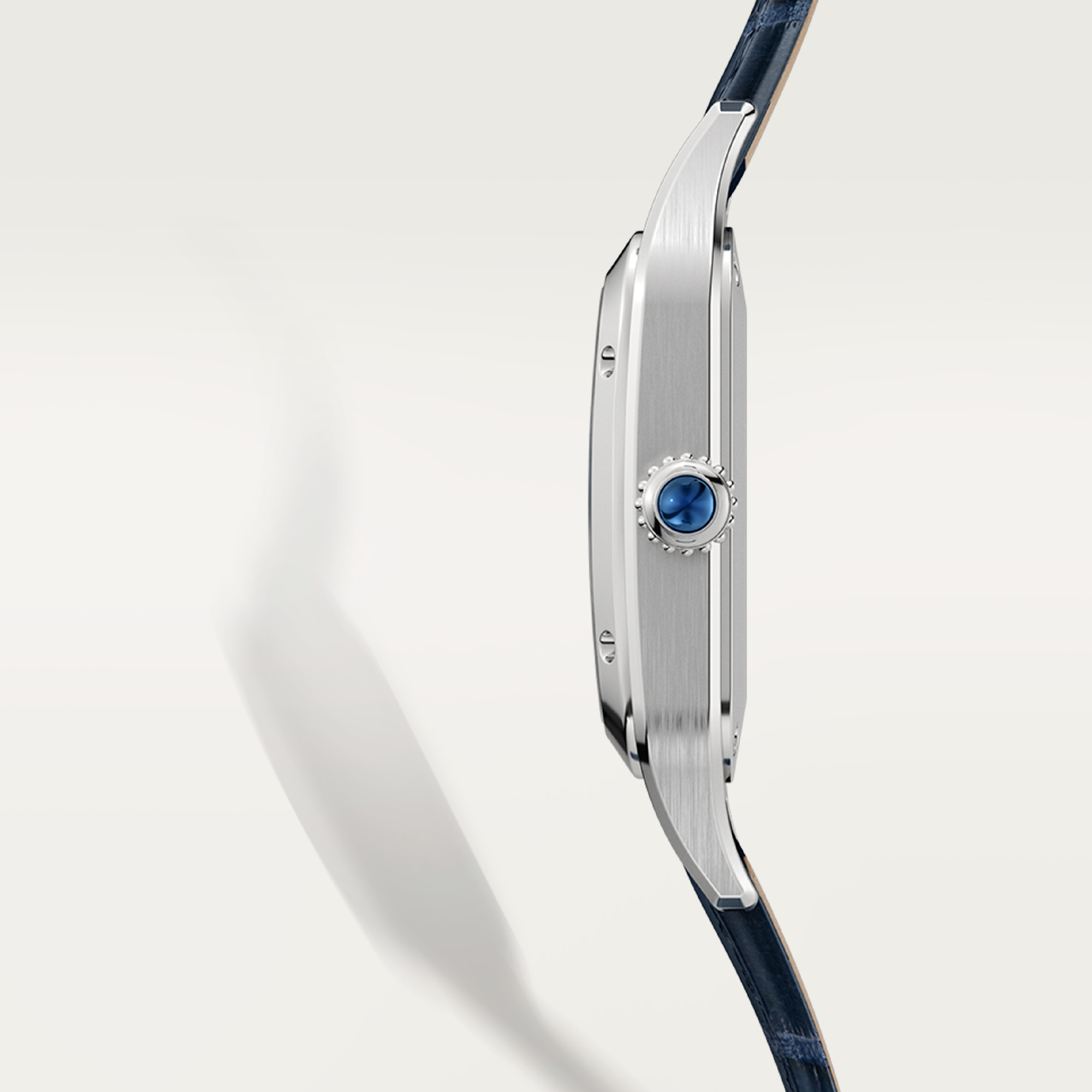 Ref. WSSA0086 - 1904 - Louis Cartier erfüllt den Wunsch des berühmten brasilianischen Fliegers Alberto Santos Dumont: während des Fliegens die Zeit ablesen zu können. So hat eine der ersten Armbanduhren das Licht der Welt erblickt und die Freundschaft zwischen zwei Pionieren besiegelt. Ihr Zifferblatt mit den abgerundeten Ecken, die harmonisch gewölbten Bandanstöße und die markanten Schrauben zeichnen eine legendäre Uhr aus, die in vielerlei Varianten reinterpretiert werden wird.