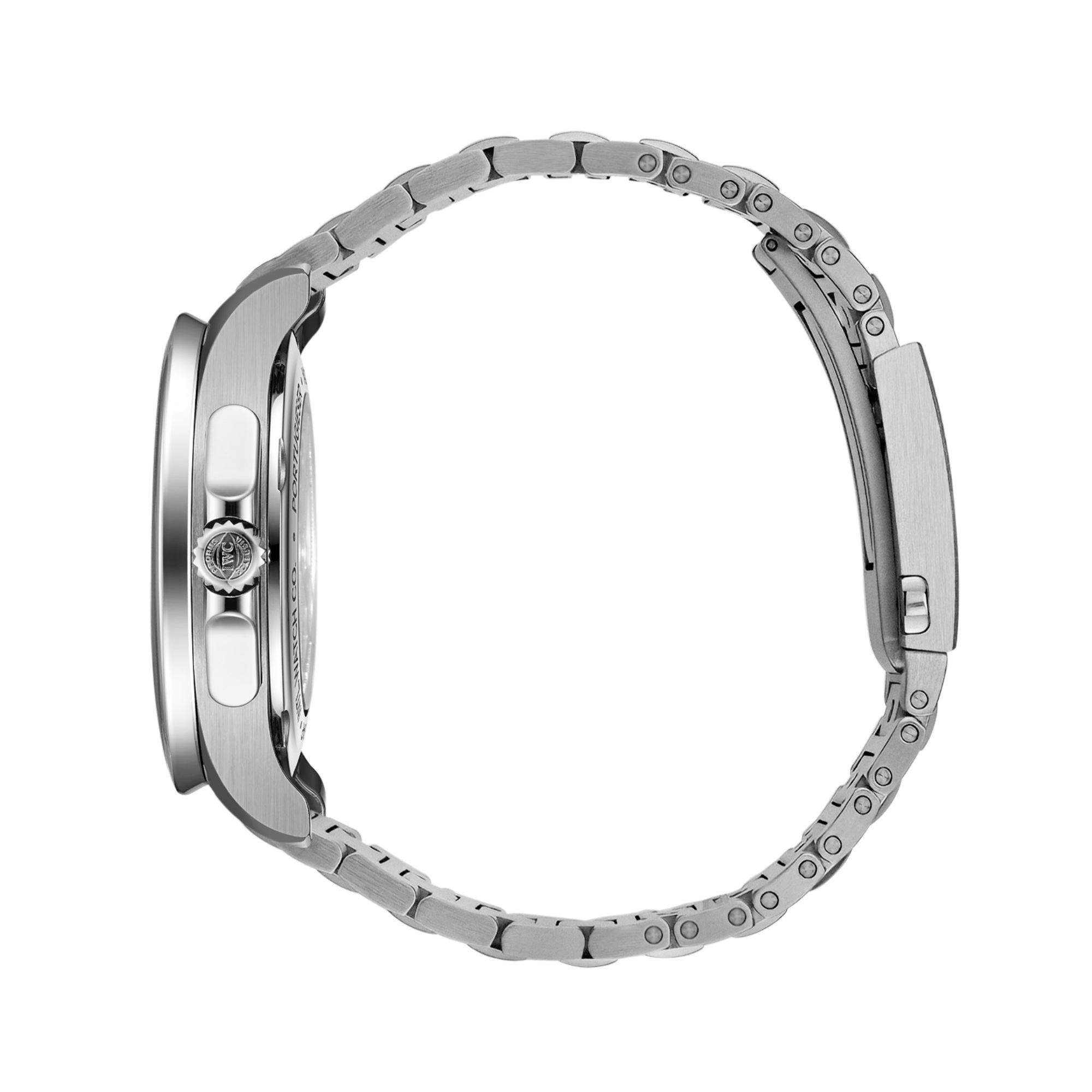 Ref. IW344002 - Die erste Portugieser aus dem Jahr 1939 wurde von den Deck-Beobachtungsuhren von IWC Schaffhausen inspiriert, die damals als nautische Instrumente für die Navigation auf Schiffen eingesetzt wurden. Dieses Erbe spiegelt sich in der Portugieser Yacht Club wider, die seit 2010 eine Note von Sportlichkeit in die Kollektion bringt. Die Portugieser Yacht Club Moon & Tide ist das erste Edelstahlmodell, das mit der von IWC Schaffhausen entwickelten Gezeitenanzeige ausgestattet ist.