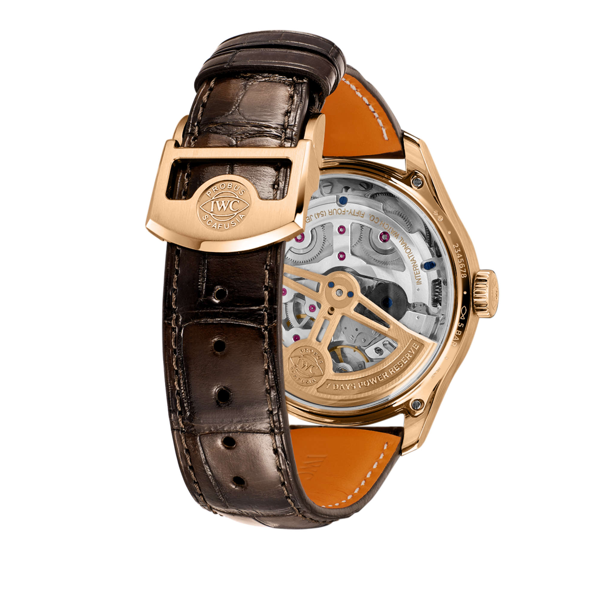 Der automatische Pellaton-Aufzug ist mit Komponenten aus nahezu verschleissfreier Zirkonoxid-Keramik verstärkt, während die Schwungmasse aus massivem Gold gefertigt ist. Sie wandelt die Bewegungen am Arm des Trägers effizient in Energie für die Aufzugsfeder um und baut in zwei Federhäusern zuverlässig eine Gangreserve von 7 Tagen auf. Die Uhr ist mit einem braunen Alligatorleder-Armband von Santoni mit einer Faltschliesse aus 18 Karat Armor Gold® ausgestattet.