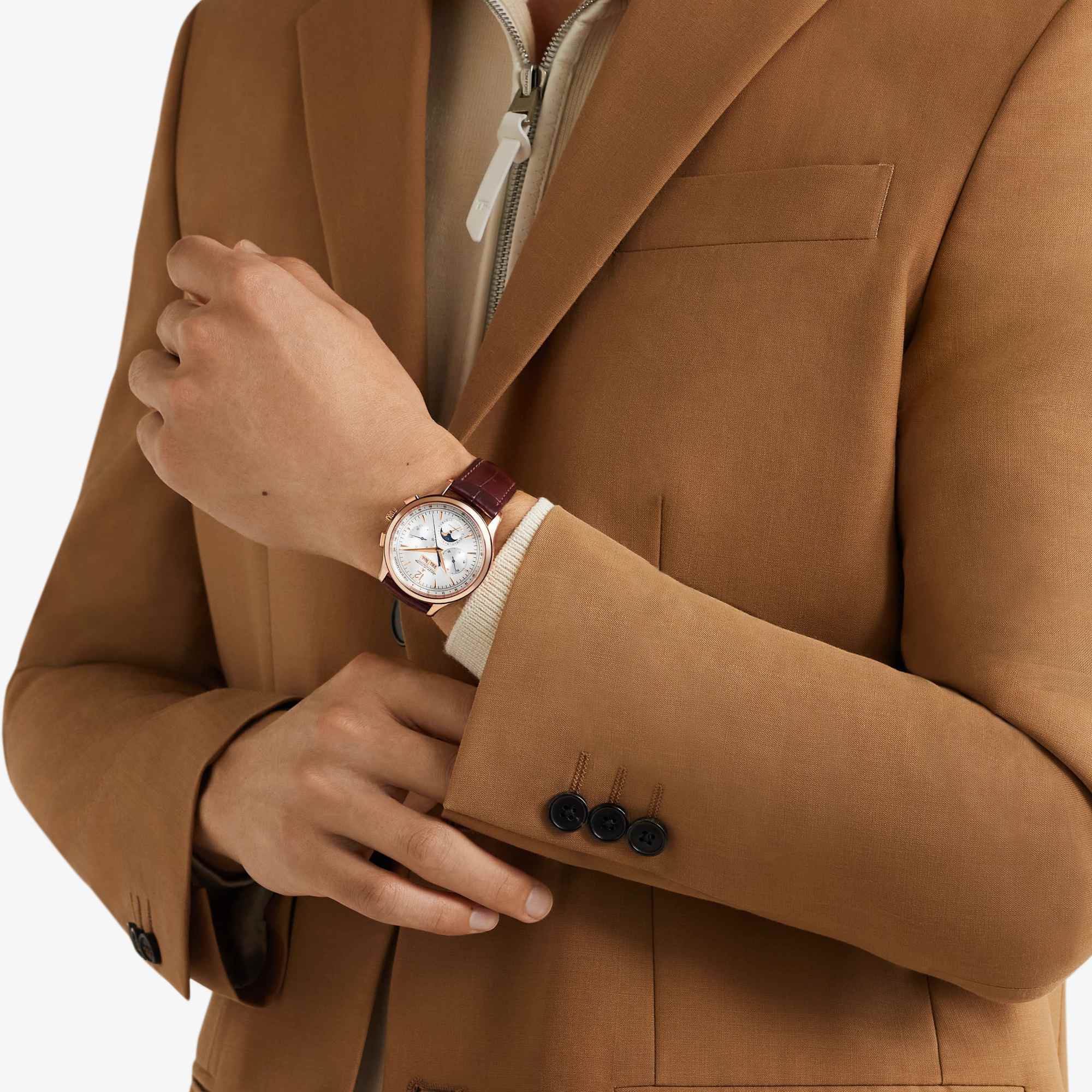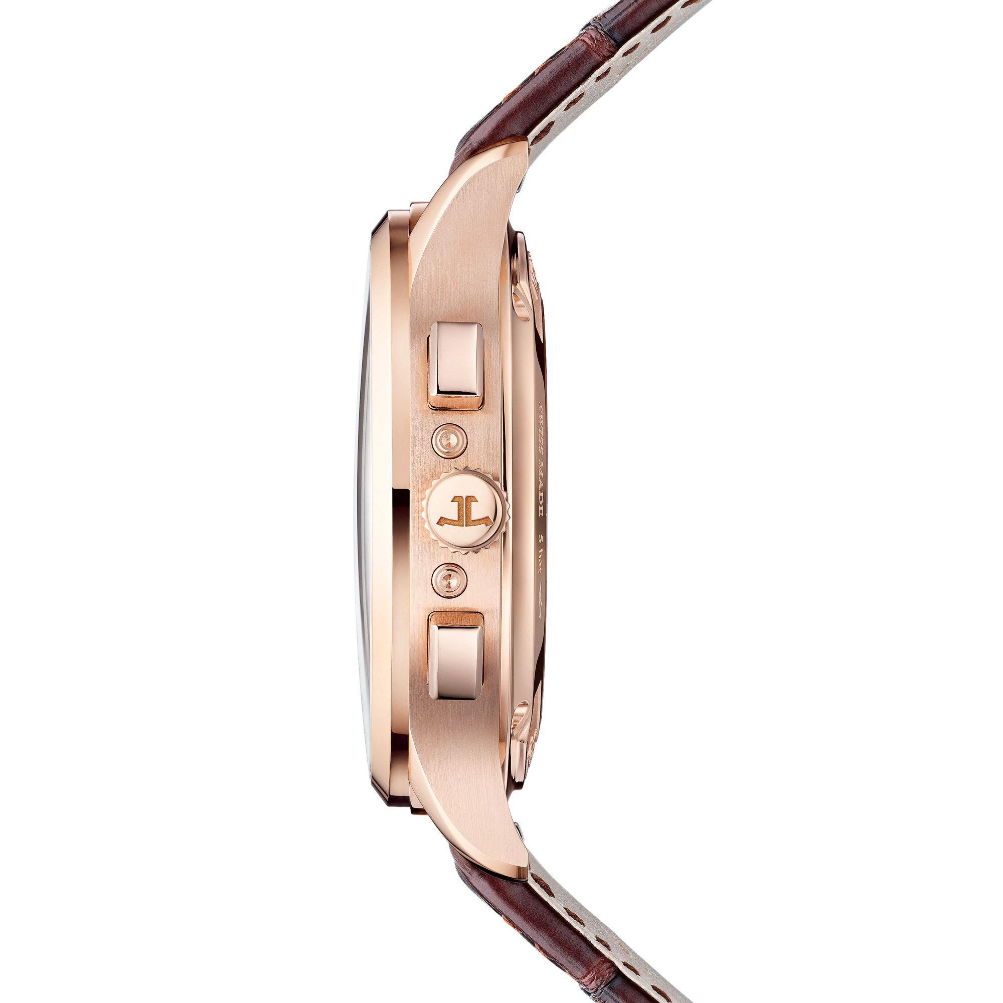 Ref. 4132530 - Diese Neuinterpretation der Master Control verführt Chronograph-Connaisseurs dazu, ihre Sammlung zu vervollständigen … Die Master Control Chronograph Calendar, auf einen Blick an der leuchtenden Farbe des Gehäuses aus Rotgold erkennbar, strahlt eine starke Persönlichkeit aus. Chronograph und Kalender, zwei sehr nützliche Komplikationen für den Alltag, stehen auf dem silbernen Zifferblatt mit Sonnenschliff im Mittelpunkt. Mit dem neuen Jaeger-LeCoultre Kaliber 759 steht dieser Zeitmesser für die Expertise der Grande Maison im Hinblick auf Chronographen und Kalender.