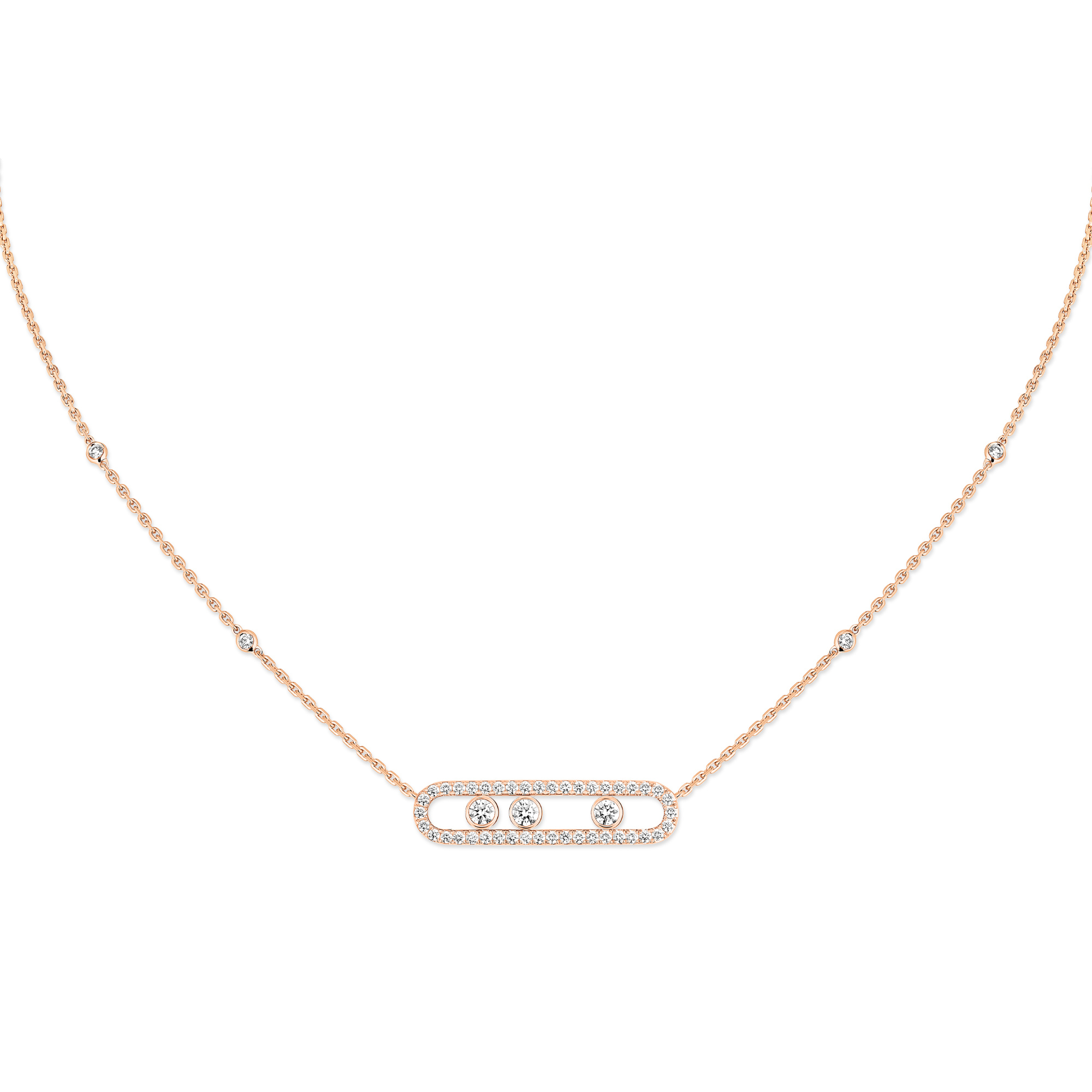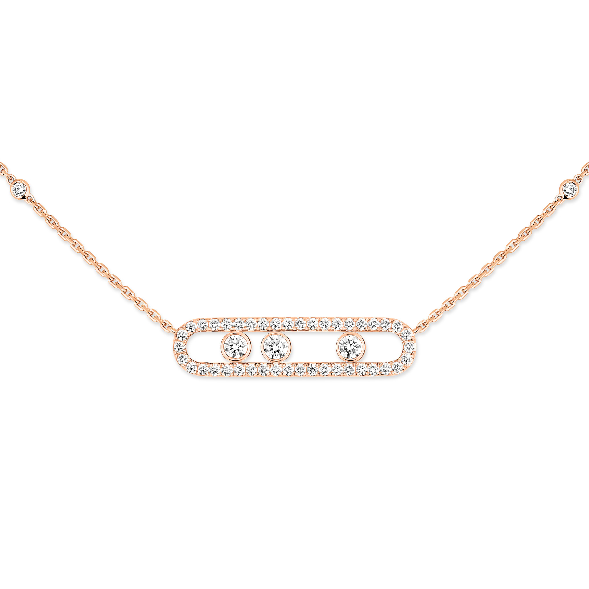 Ref. 03994-PG - Innerhalb von zehn Jahren, hat sich die Move Kollektion über den Status des „It“-Schmucks hinausentwickelt und geht nun in als ikonische Kollektion in die Schmuckgeschichte ein. Die Move Schmuckstücke sind voller Poesie, mit ihren drei Diamanten, die fest in ihren kostbaren Bahnen sitzen. Die Bewegung der Steine entsprang einer Kindheitserinnerung Valerie Messikas: „Als ich ein kleines Mädchen war, spielte mein Vater immer mit den Diamanten in seinen Händen, wenn er sie mir zeigte. Das Licht erweckte sie zum Leben und so konnte ich einen bunten Regenbogen in den Steinen sehen. Ich wollte diese Magie der Diamanten neu erschaffen“.