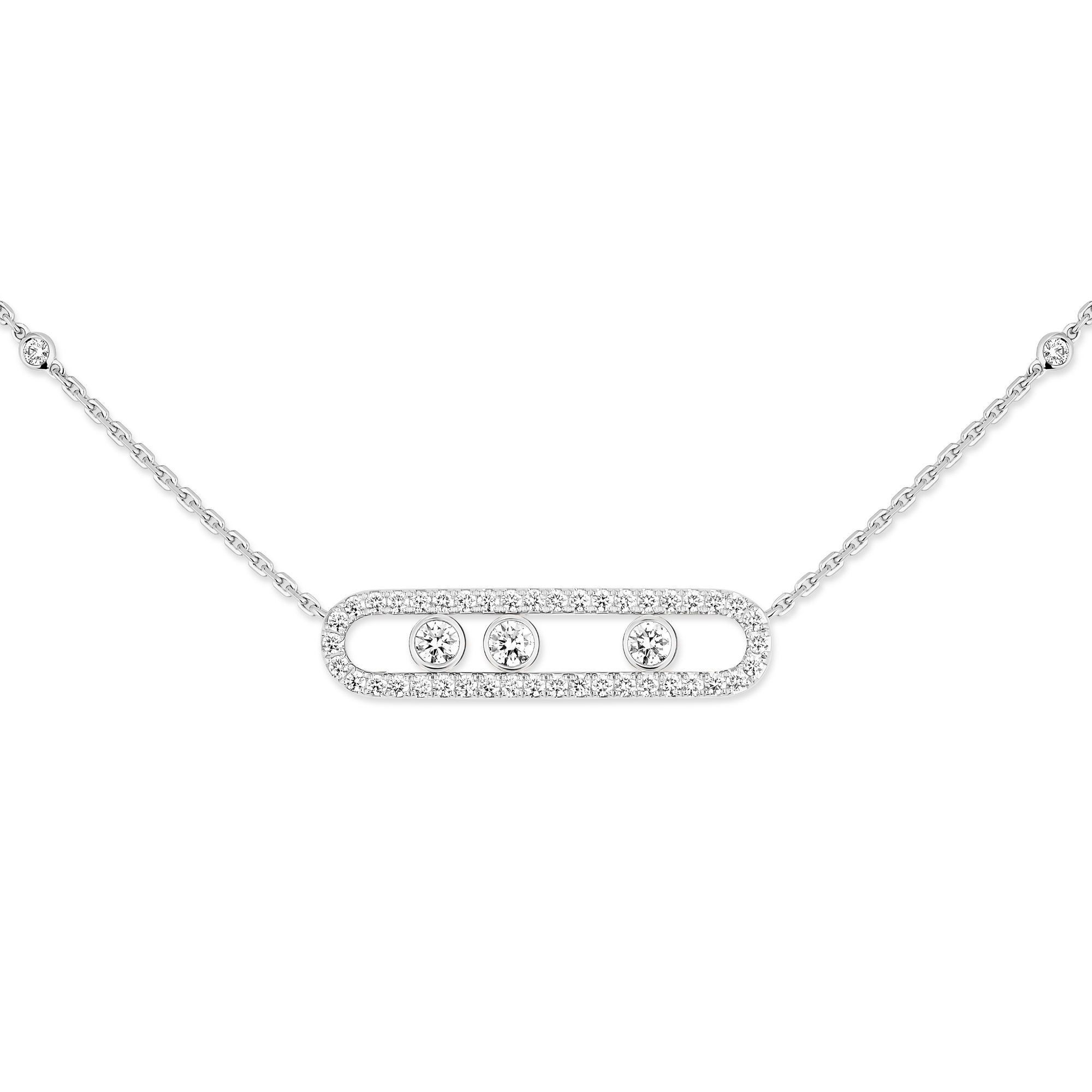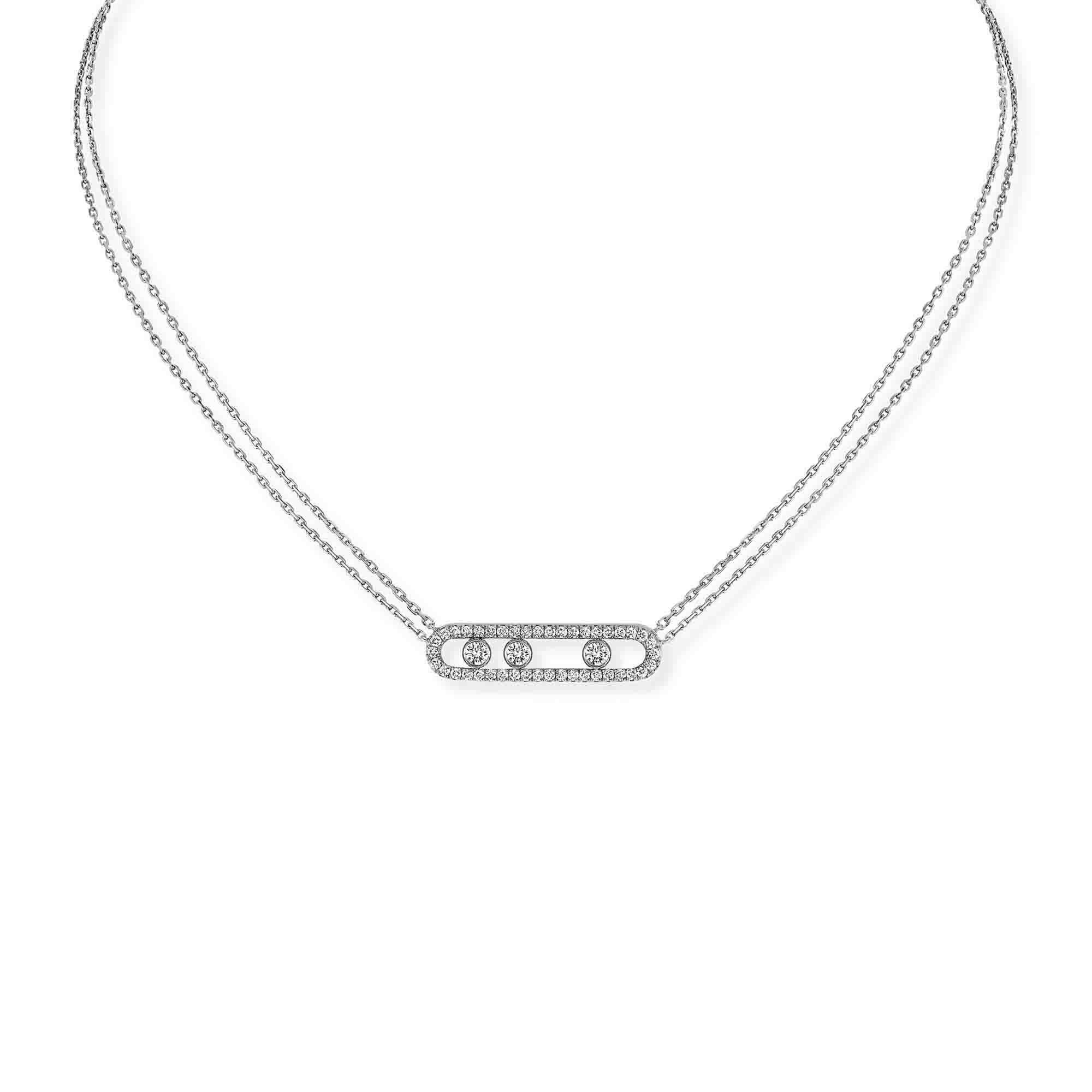 Ref. 03994-WG - Innerhalb von zehn Jahren, hat sich die Move Kollektion über den Status des „It“-Schmucks hinausentwickelt und geht nun in als ikonische Kollektion in die Schmuckgeschichte ein. Die Move Schmuckstücke sind voller Poesie, mit ihren drei Diamanten, die fest in ihren kostbaren Bahnen sitzen. Die Bewegung der Steine entsprang einer Kindheitserinnerung Valerie Messikas: „Als ich ein kleines Mädchen war, spielte mein Vater immer mit den Diamanten in seinen Händen, wenn er sie mir zeigte. Das Licht erweckte sie zum Leben und so konnte ich einen bunten Regenbogen in den Steinen sehen. Ich wollte diese Magie der Diamanten neu erschaffen“.