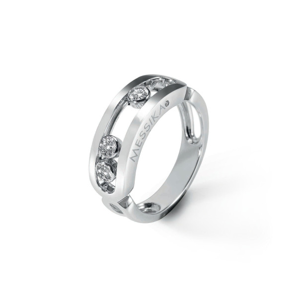 Ref. 03998-WG - Innerhalb von zehn Jahren, hat sich die Move Kollektion über den Status des „It“-Schmucks hinausentwickelt und geht nun in als ikonische Kollektion in die Schmuckgeschichte ein. Die Move Schmuckstücke sind voller Poesie, mit ihren drei Diamanten, die fest in ihren kostbaren Bahnen sitzen. Die Bewegung der Steine entsprang einer Kindheitserinnerung Valerie Messikas: „Als ich ein kleines Mädchen war, spielte mein Vater immer mit den Diamanten in seinen Händen, wenn er sie mir zeigte. Das Licht erweckte sie zum Leben und so konnte ich einen bunten Regenbogen in den Steinen sehen. Ich wollte diese Magie der Diamanten neu erschaffen“.