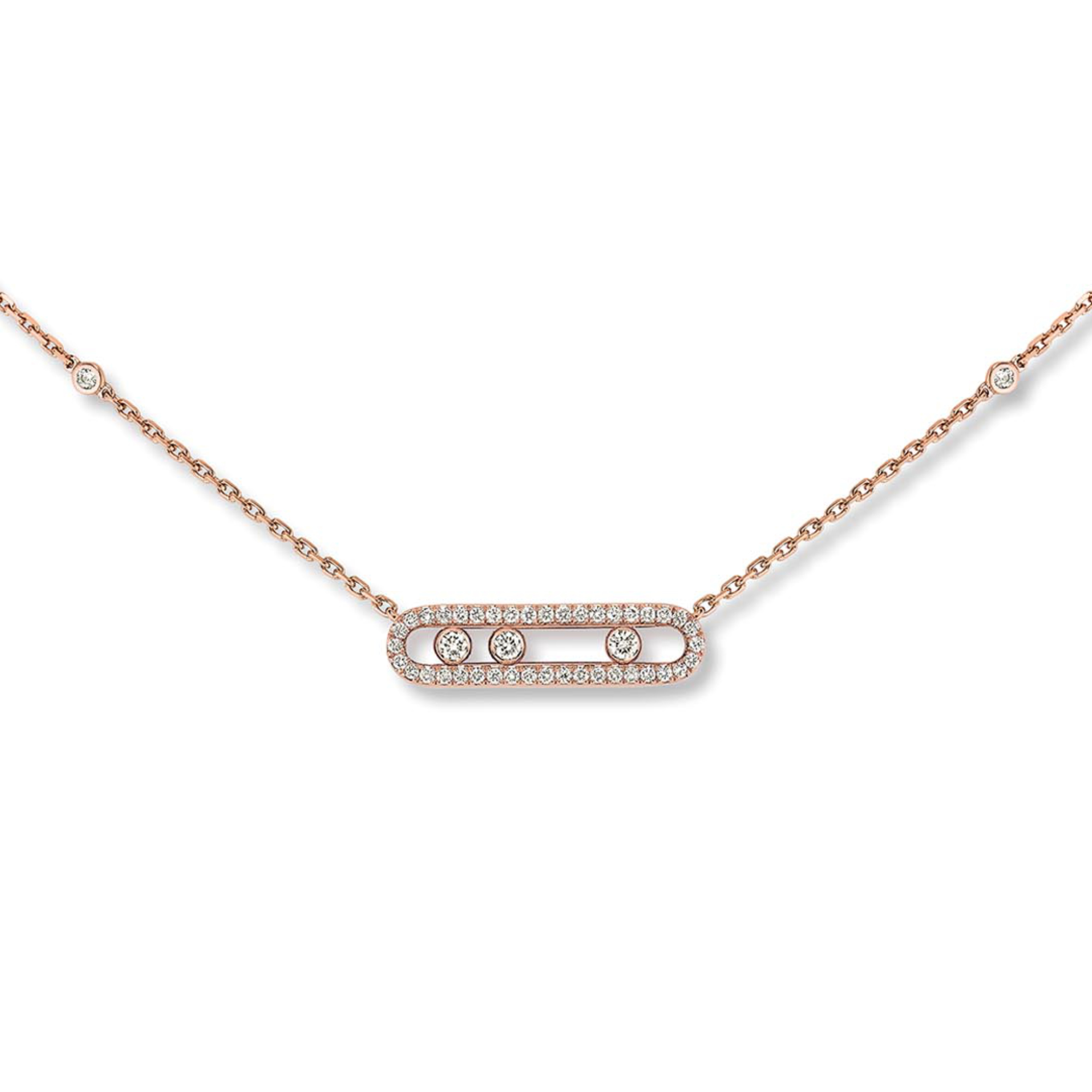 Ref. 04322-PG - Innerhalb von zehn Jahren, hat sich die Move Kollektion über den Status des „It“-Schmucks hinausentwickelt und geht nun in als ikonische Kollektion in die Schmuckgeschichte ein. Die Move Schmuckstücke sind voller Poesie, mit ihren drei Diamanten, die fest in ihren kostbaren Bahnen sitzen. Die Bewegung der Steine entsprang einer Kindheitserinnerung Valerie Messikas: „Als ich ein kleines Mädchen war, spielte mein Vater immer mit den Diamanten in seinen Händen, wenn er sie mir zeigte. Das Licht erweckte sie zum Leben und so konnte ich einen bunten Regenbogen in den Steinen sehen. Ich wollte diese Magie der Diamanten neu erschaffen“.