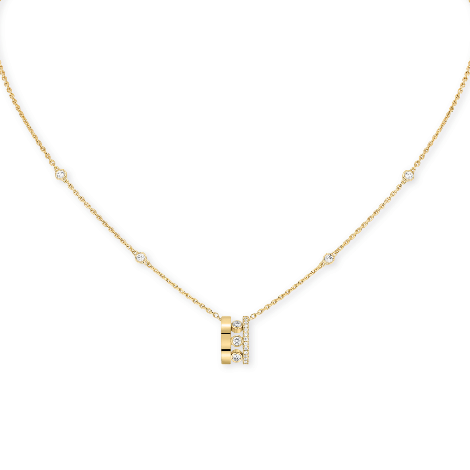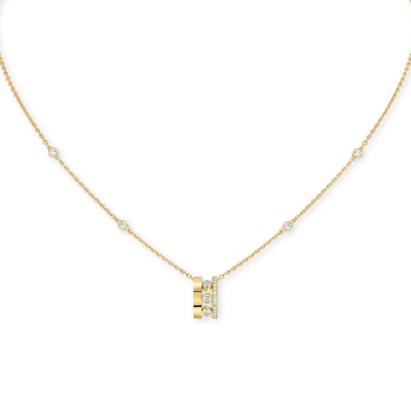 Ref. 07158-YG - Dieses Diamantcollier mit Anhänger aus 18 Karat Gelbgold übernimmt alle Codes der Juwlierkollektion Move Romane: Brillanten Move, asymmetrische Linien, Kontrast zwischen poliertem Gold und mit Diamanten ausgefasster Fläche ... Dieser Diamantschmuck aus Gelbgold unterstreicht das Dekolleté diskret mit einem sanften Schimmer. Die Anhänger-Kette aus Diamanten und Gelbgold Move kann allein oder zusammen mit anderen getragen werden. Anmerkung: Diamanten im Brillantschliff zieren die Kette für zusätzliche Leuchtkraft. Entdecken die gesamte Messika Kollektion mit Diamant-Ketten sowie alle Schmuck- und Haute Joaillerie-Kollektionen der Maison.