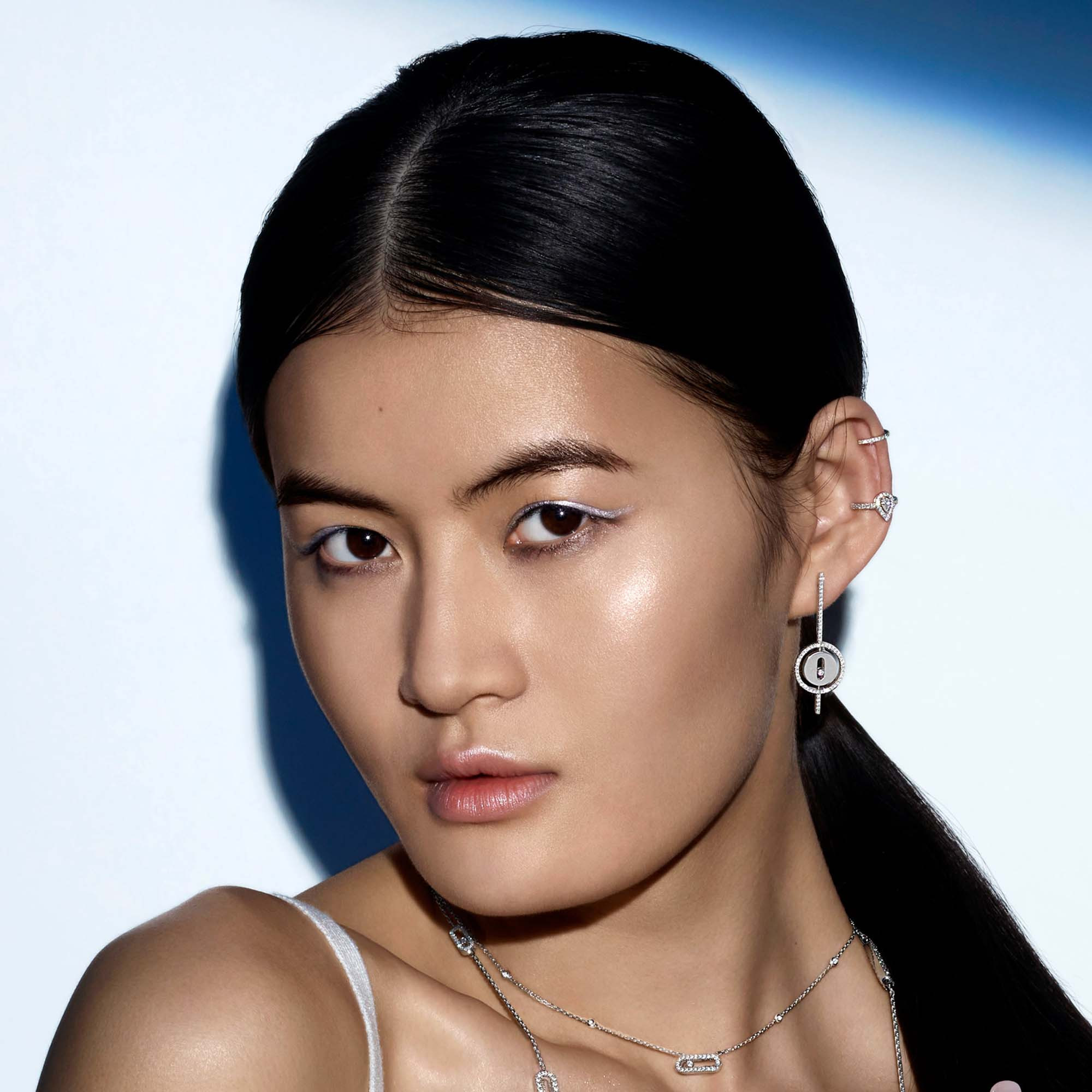 Ref. 10121-WG - Als neues Feld der Selbstdarstellung schmücken sich die Ohren von unten bis oben. Um Ihnen zu helfen, diesen wilden Trend zu übernehmen, entwarf Valérie Messika einen einzelnen Diamant-Ohrclip aus Weißgold, der sich um den gesamten Ohrrand schmiegt. In seiner minimalistischen Version wird der einzelne Luxus-Ohrring mit einem diskreten und edlen Diamant im Tropfenschliff verziert, der die Ohrmuschel einkleidet. Sie brauchen kein Piercing, denn dieser einzelne Diamant-Ohrring für Damen hält dank eines ausgeklügelten Clip-Systems. Wer sagt, dass man leiden muss, um schön zu sein?