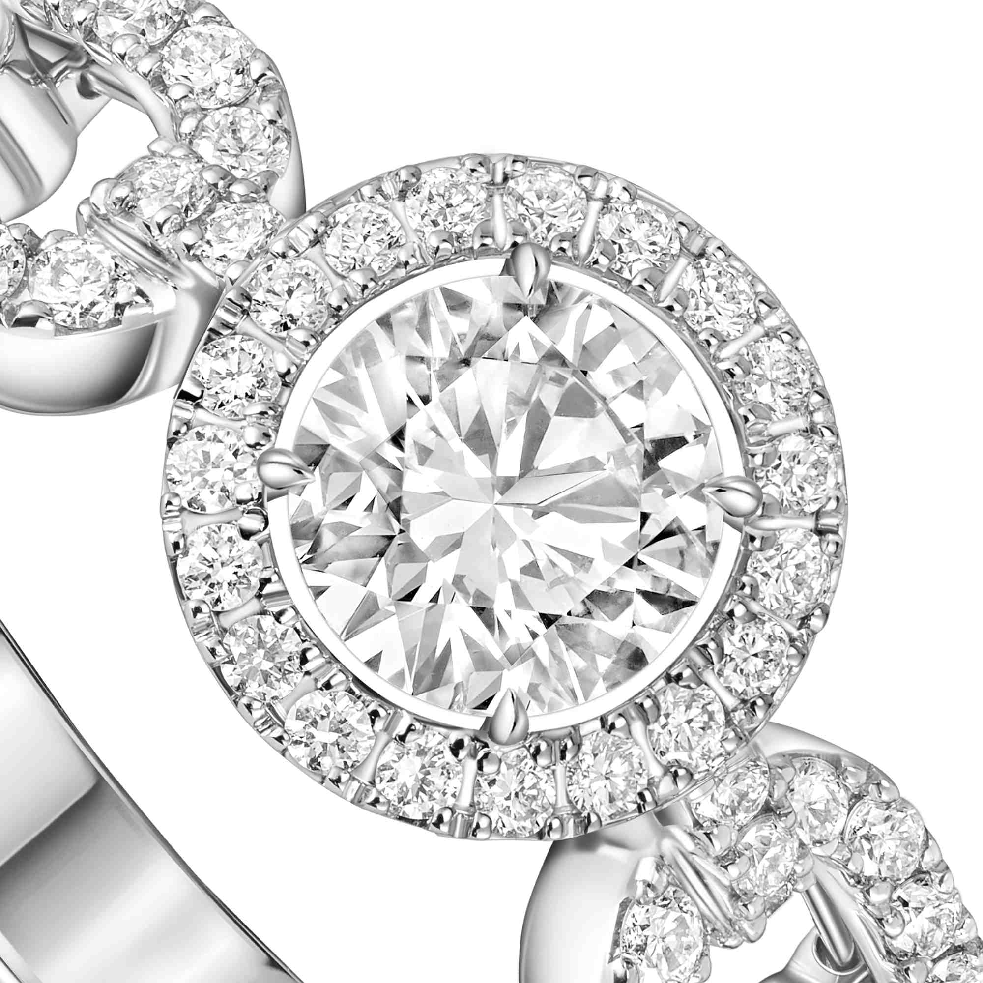Ref. 13747-WG - Die unverwechselbaren Codes der Maison Messika in einem ebenso eleganten wie verwegenen Verlobungsring mit einem zentralen Diamanten von 0,30 kt. Die Verbindungsglieder mit ihren beweglichen Diamanten, die charakteristisch für die Move Link Schmuckkollektion sind, machen diesen Ring zu einem originellen und unverwechselbaren Diamantring aus Gold. Ein Hochzeitsschmuckstück mit grafischen Linien und einem unvergleichlichen Glanz.