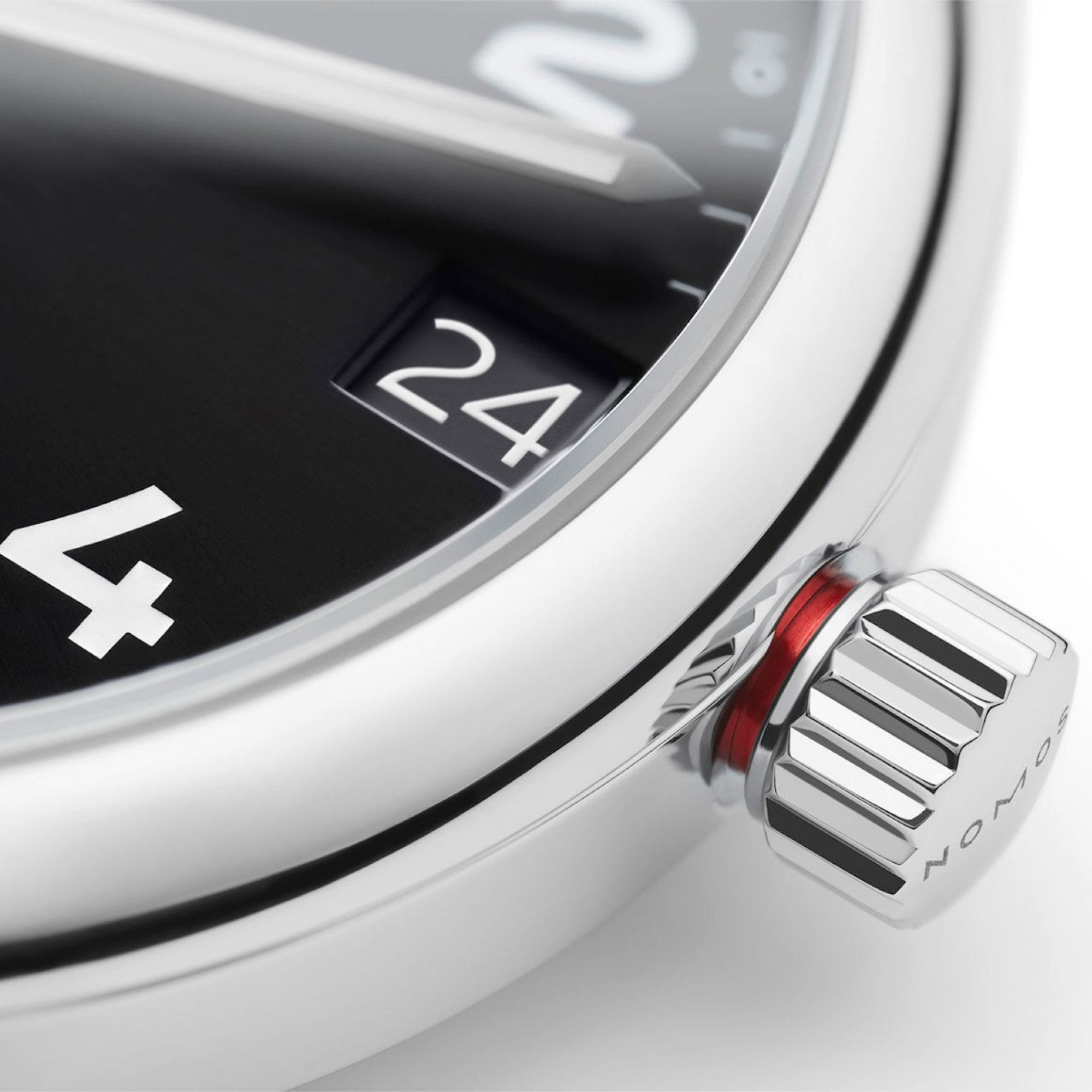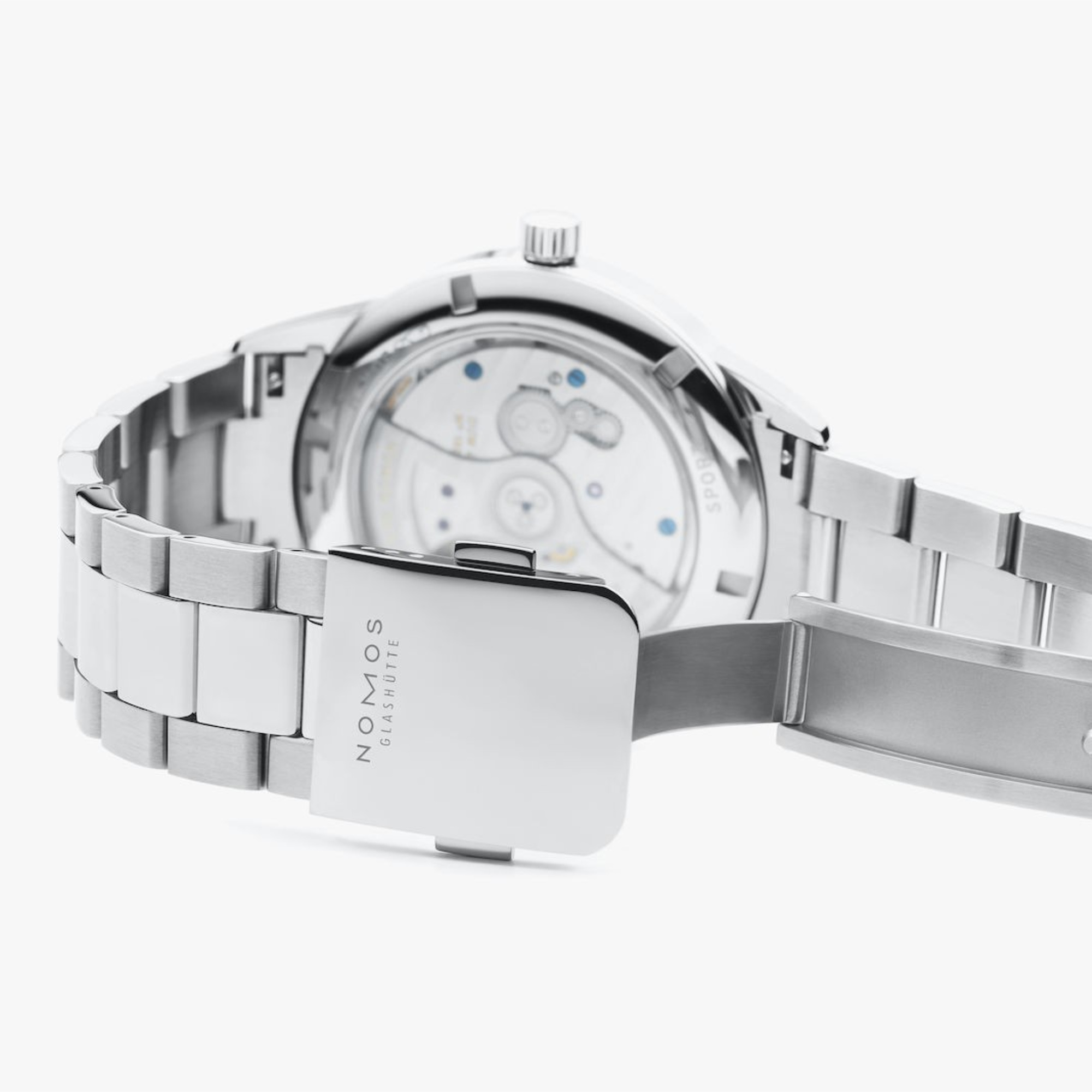 rhodinierte Werkoberflächen mit Glashütter Streifenschliff und NOMOS-Perlage