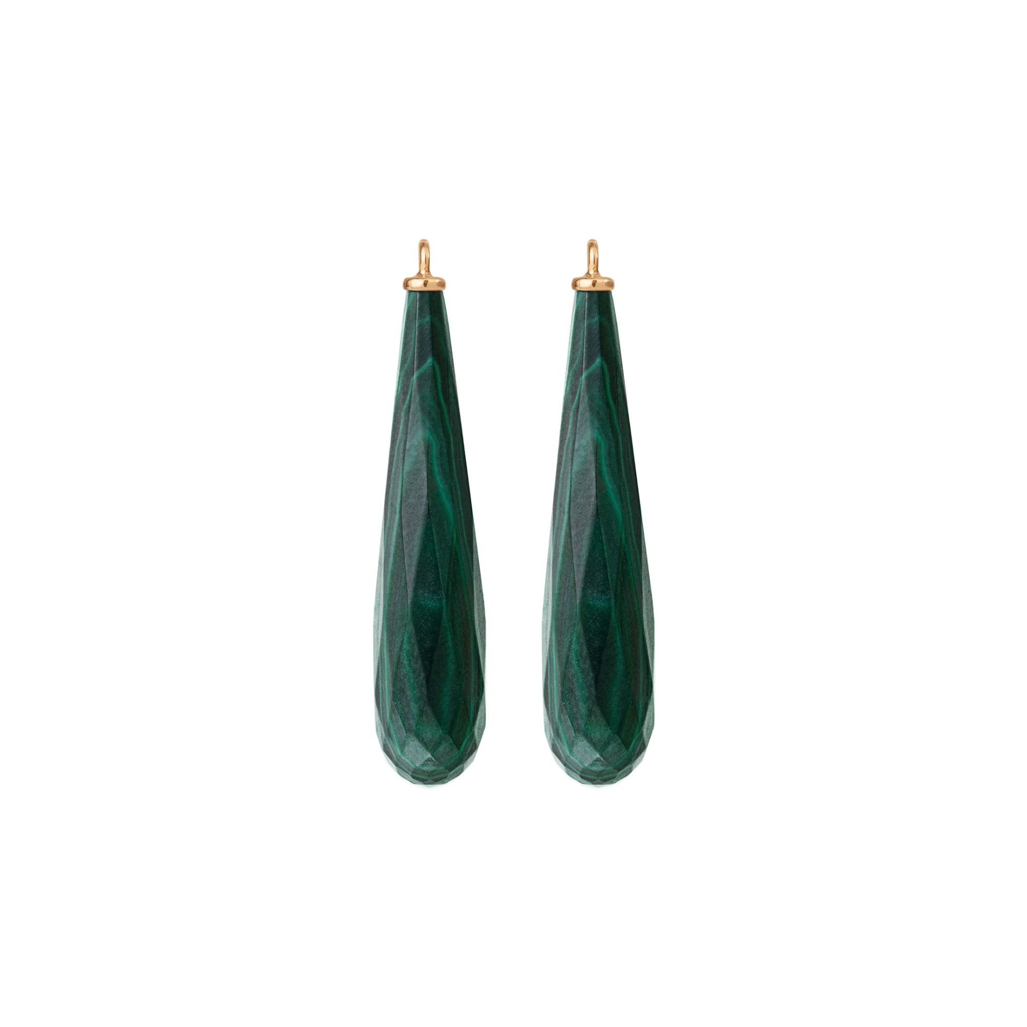 2 Malachite in Tropfenform, facettiert, 30x7 mm