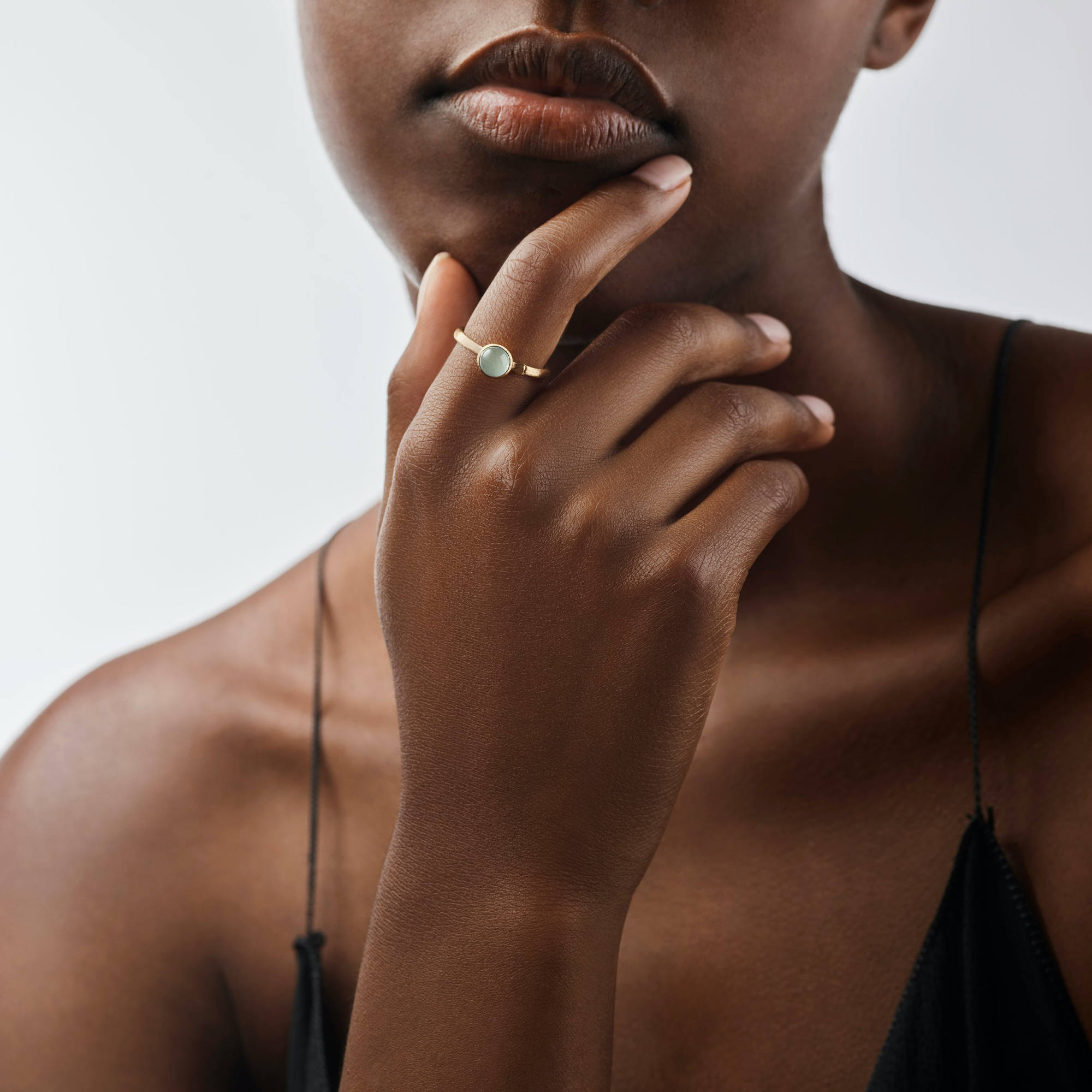 Ref. A2708-407 - Mit einer Fülle an kräftigen Farben und weichen Formen strahlt die Kollektion im Luxus des Boheme. Inspiration für die Kollektion bot die Lotusblume: Gold und Silber schmiegen sich in Blattform um große, cabochongeschliffene Edelsteine in unzähligen Nuancen. Diese exklusive Kollektion wurde über drei Jahre in unzähligen Skizzen entwickelt. Die handverlesenen Edelsteine müssen spezielle Maße haben und bestimmte Qualitätsanforderungen erfüllen, bevor sie geschliffen und in den satinierten Ring eingefasst werden. Mit mehr als 3000 verschiedenen Elementen gestaltet jede Frau ihren ganz persönlichen Look. Die verschiedenen Ringe, Anhänger, Ohrringe und Designketten lassen sich ganz frei miteinander kombinieren.