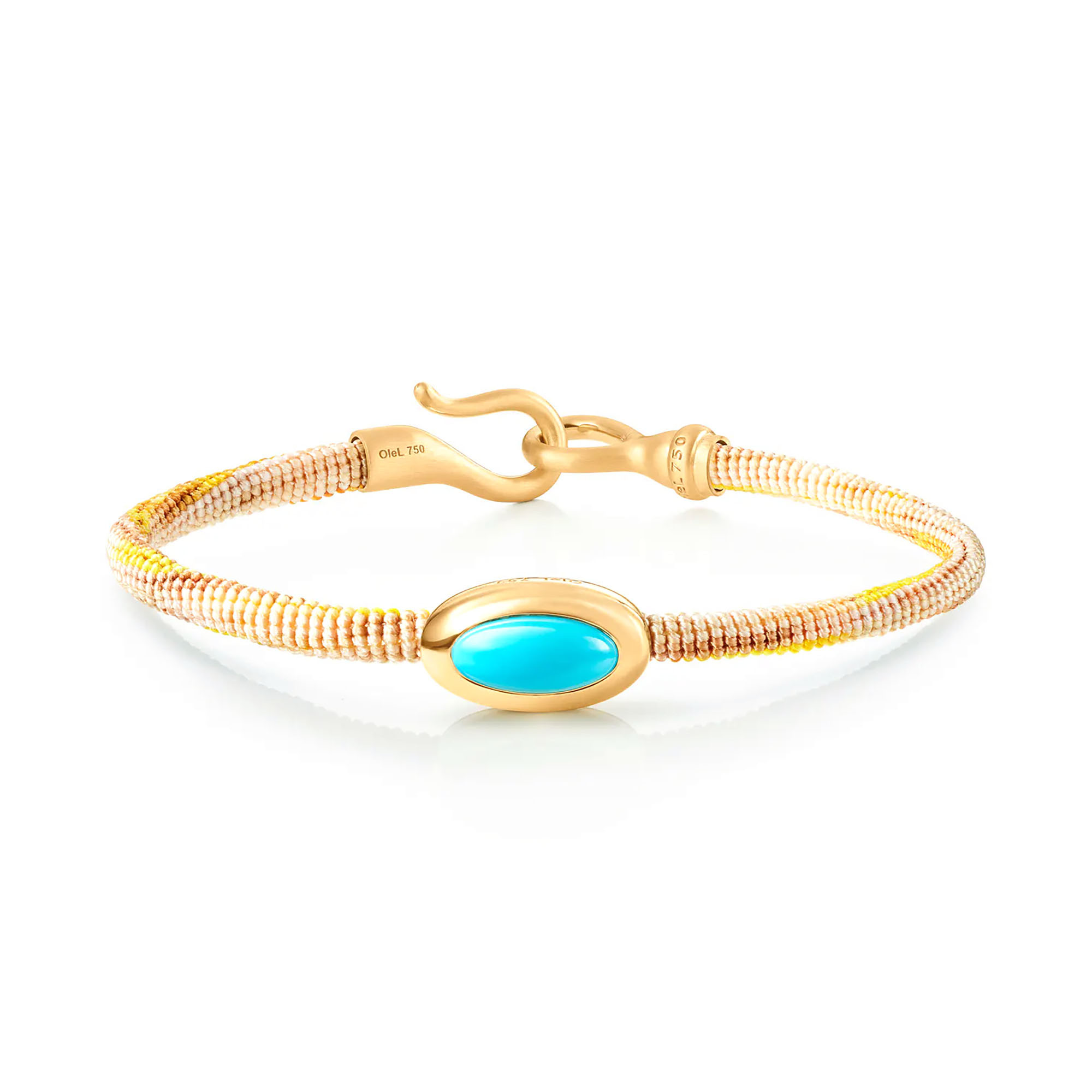 Ref. A2941-407 - Die Designerin Charlotte Lynggaard hat die farbenfrohen Life Armbänder als Hommage an das Leben entworfen - und an unsere Möglichkeiten, es voll und ganz auszuleben. Das robuste Armband ist dazu erschaffen, es immer um zu haben. Es begleitet Ihr buntes Leben, egal ob es sich am Strand oder in der Wüste abspielt, ob Sie tauchen, tanzen oder reiten - oder einfach Zeit mit den Menschen verbringen, die Sie lieben. - Die Life Armbänder wurden für sowohl Frauen wie Männer entworfen. Das Armband wird mit einem Haken aus 18k Gold geschlossen. Die unwiderstehliche Palette wird speziell für OLE LYNGGAARD COPENHAGEN von Hand gefärbt, gewebt und geknüpft.
