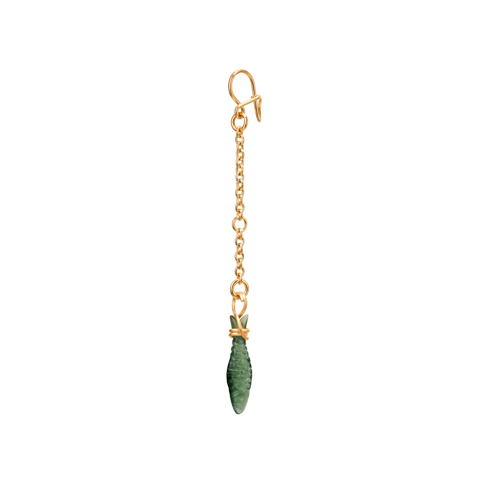 Ref. A3157-402 - Von Sofia Lynggaard Normann entworfen. Dieser Young Fish-Ohrringanhänger ist aus 18-karätigem Gelbgold gefertigt und mit einem individuell geschliffenen 1,6 cm großen Serpentin versehen. Die Gesamtlänge des Anhängers beträgt 5,3 cm. Wird als Einzelstück verkauft. Teil der Young Fish-Kollektion.
