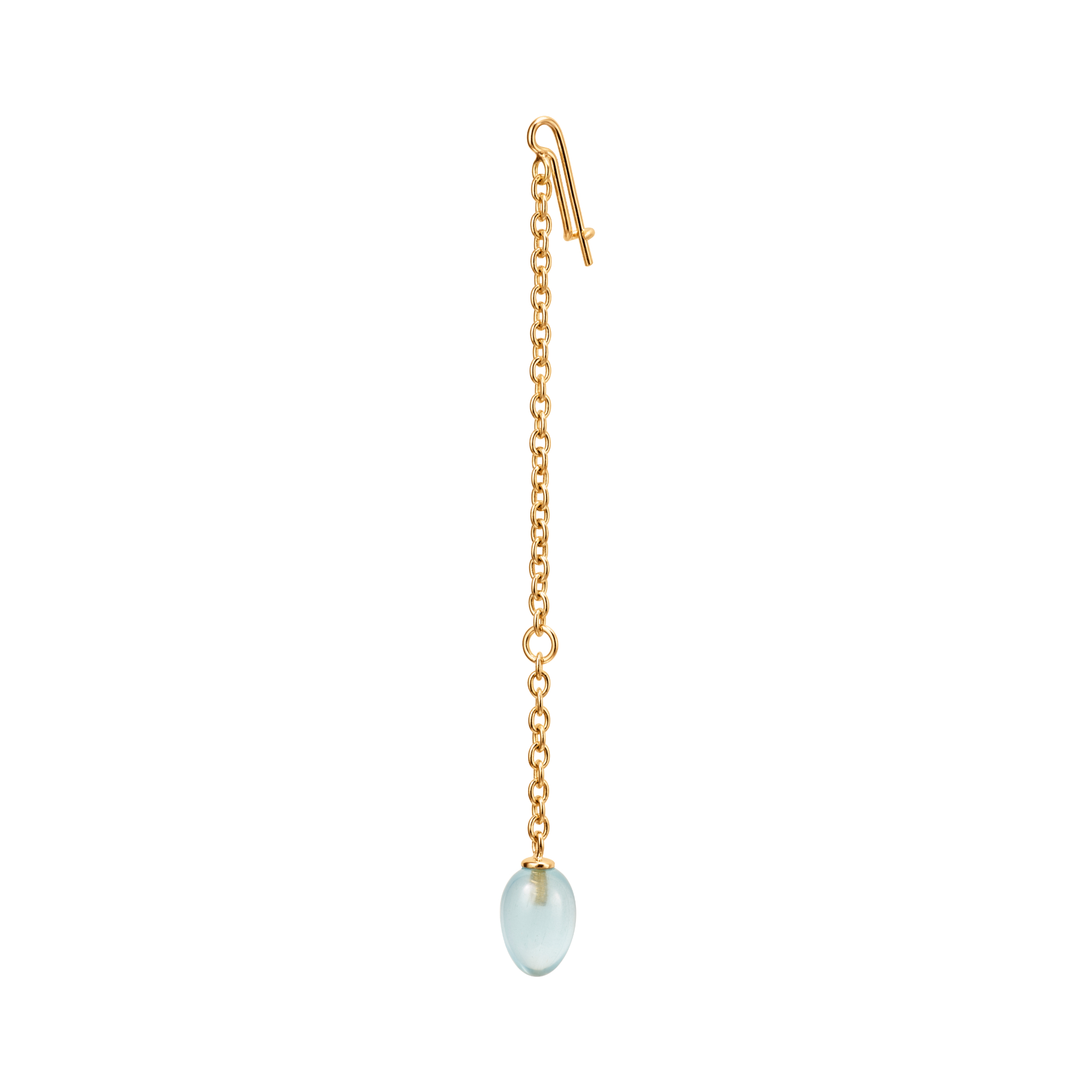 Ref. A3158-401 - Von Sofia Lynggaard Normann entworfen. Dieser Young Fish-Ohrringanhänger ist aus 18-karätigem Gelbgold gefertigt und mit einem Aquamarin in Tropfenform versehen. Die Gesamtlänge des Anhängers beträgt 5,8 cm. Wird als Einzelstück verkauft. Teil der Young Fish-Kollektion.
