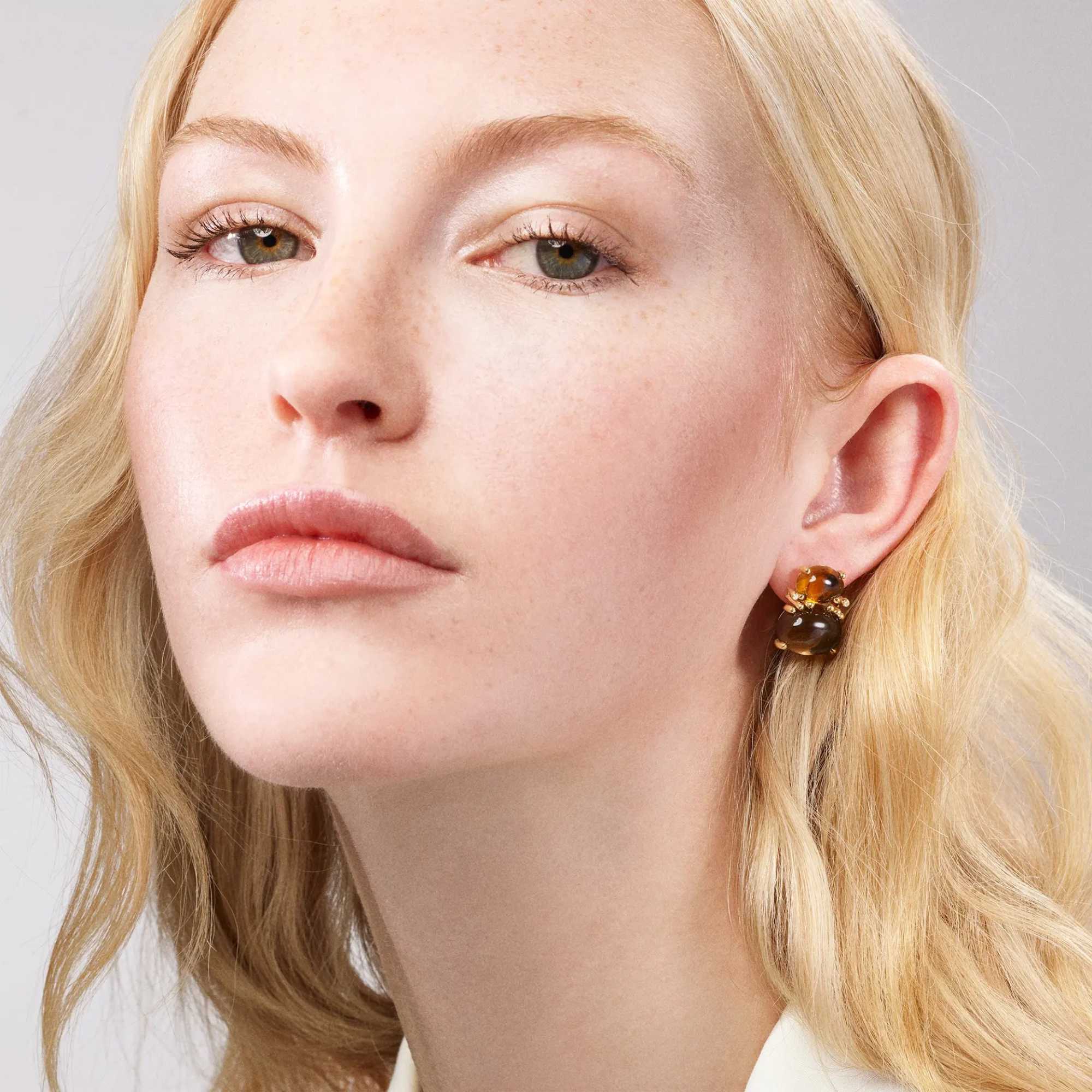 Ref. A3223-411 - Diese BoHo-Ohrstecker, entworfen von Charlotte Lynggaard, sind aus 18 Karat Gelbgold gefertigt und mit zwei Rauchquarzen, zwei gelben Turmalinen und vier Diamanten mit einem Gesamtgewicht von 0,01 Karat besetzt. TW VS. Jeder Ohrring verfügt über eine kleine Öse für Ohrringanhänger. Verkauft als Paar. Teil der BoHo-Kollektion.