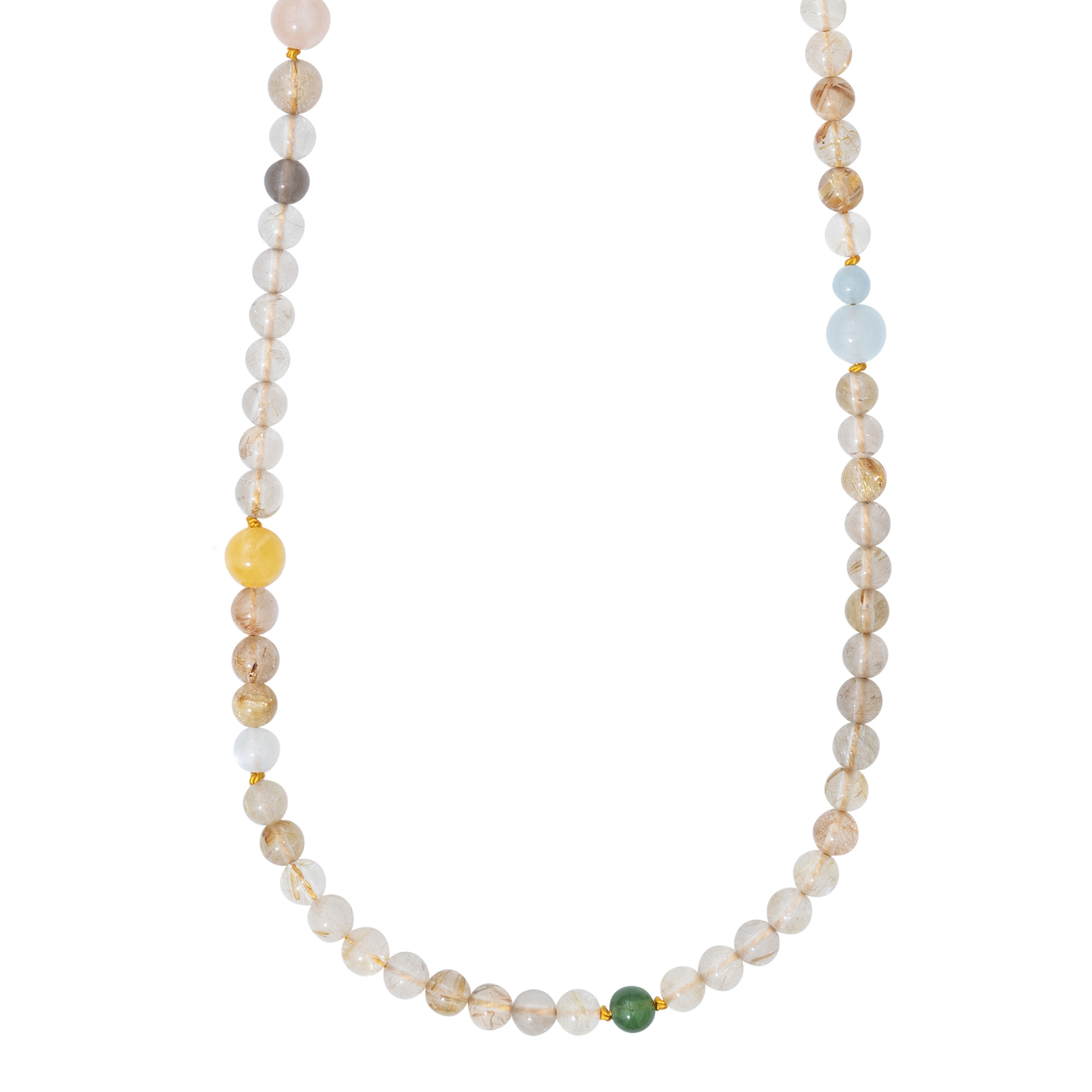 Ref. D9982-001 - Das von Charlotte Lynggaard entworfene Perlencollier ist 80 cm lang ohne Verschluss. Es ist aus Süßwasserperlen, Bernstein, Aquamarin, rötlichem Mondstein, grauem Mondstein, Lapis Lazuli, Rutilquarz, Serpentin, Türkis und weißem Mondstein gefertigt. Kombinierbar mit Ole Lynggaard Copenhagen Verschlüssen. Teil der Ole Lynggaard Copenhagen Kollektion.