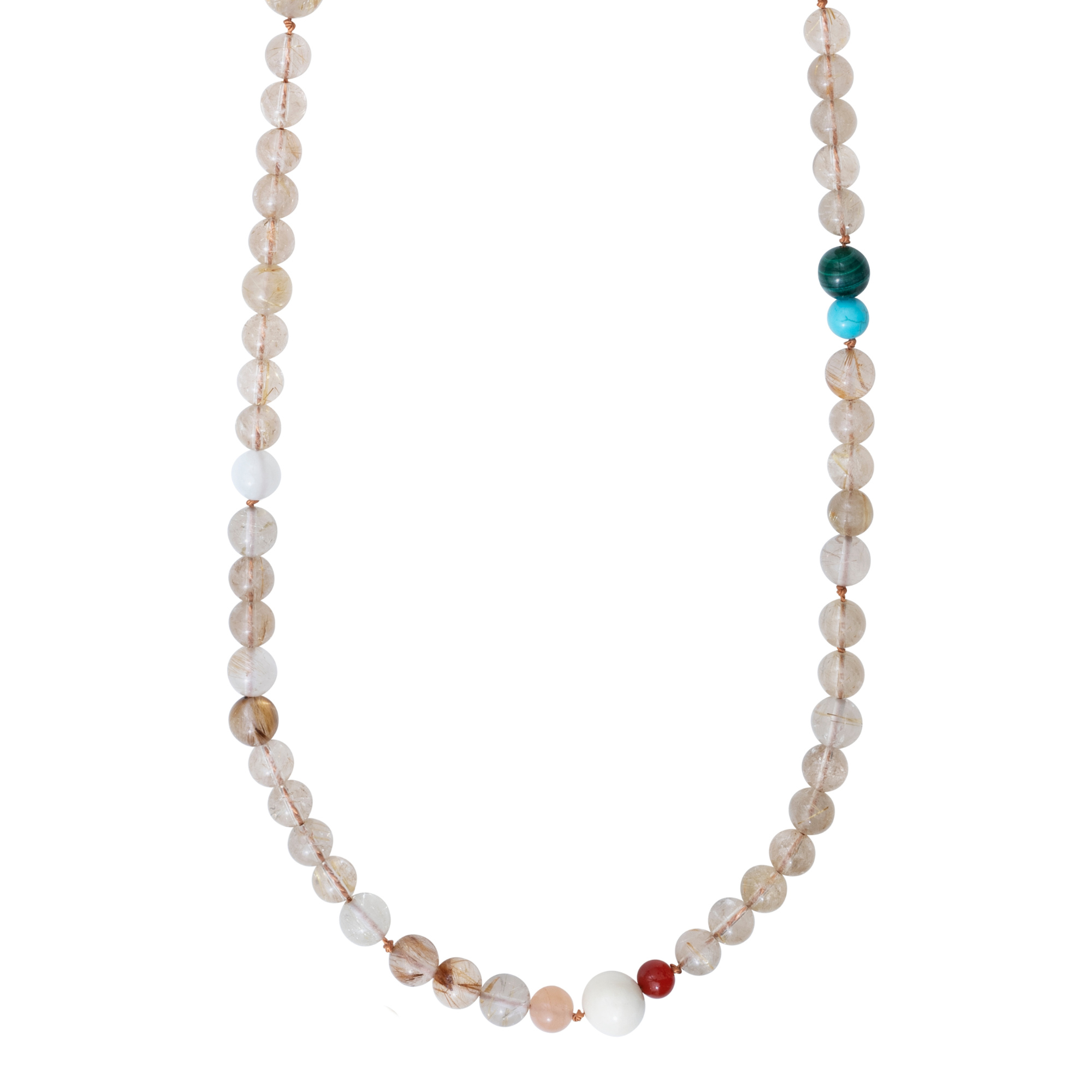 Ref. D9986-001 - Das von Charlotte Lynggaard entworfene Perlencollier ist 90 cm lang ohne Verschluss. Es ist aus Aquamarin, rötlichem Mondstein, Knochen, Karneol, grauem Mondstein, Malachit, Serpentin, Türkis und weißem Mondstein gefertigt. Kombinierbar mit Ole Lynggaard Copenhagen Verschlüssen. Teil der Ole Lynggaard Copenhagen Kollektion.