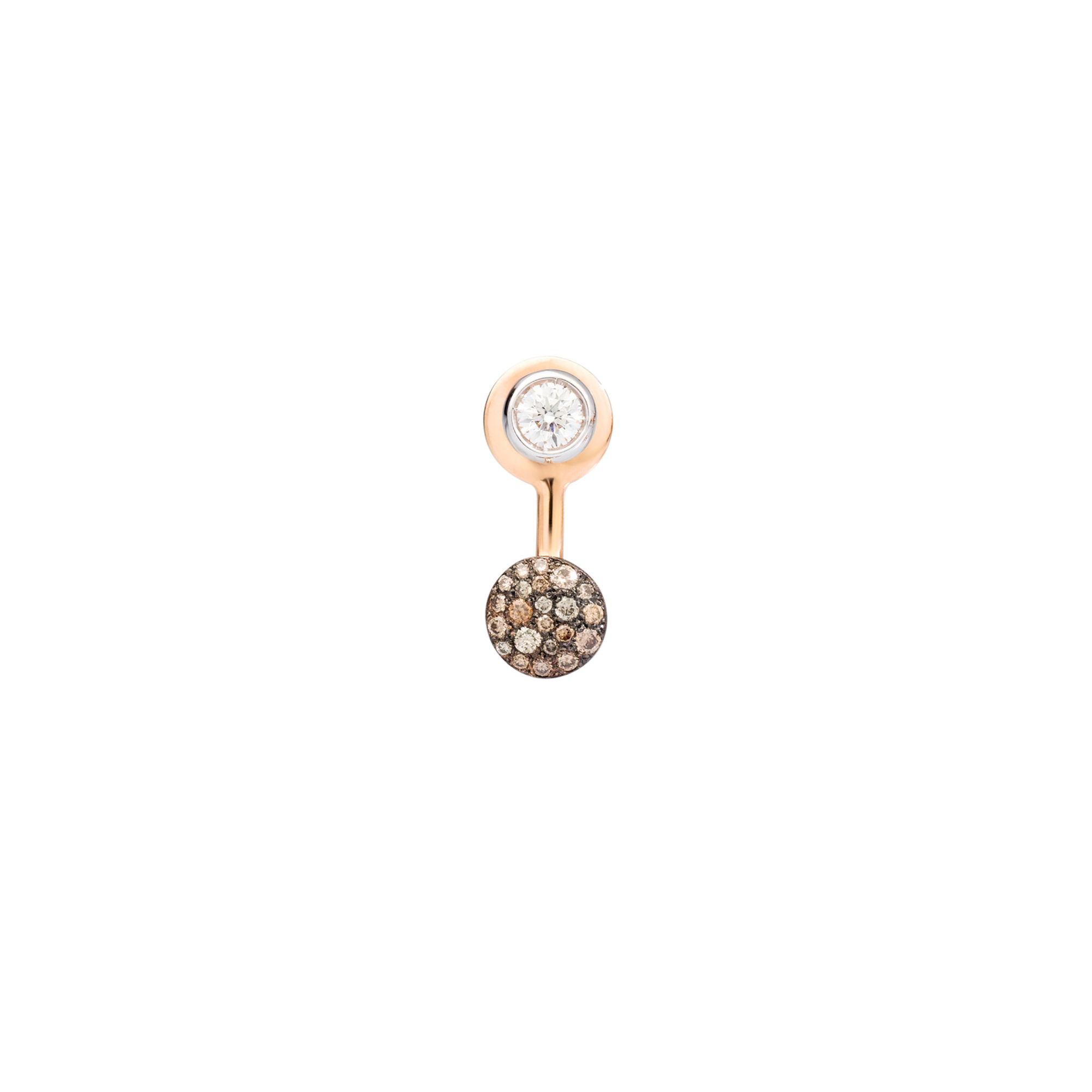 Ref. PHC3052O6BWRDB0BR - Sabbia ist eines der charakteristischen Designs von Pomellato, das es wagt, Diamanten in einem ganz neuen Licht zu präsentieren. Sabbia zelebriert die unregelmäßige Schönheit der Natur und bietet verschiedene Möglichkeiten, Diamanten auf eine neue Art und Weise zu tragen. Da die Vielseitigkeit das Herzstück der unkonventionellen Persönlichkeit von Sabbia ist, ist der Ohrring mit einem Solitär aus weißen Diamanten in Kombination mit einer Pavé-Scheibe aus braunen Diamanten eine Einladung zum Experimentieren. Der Ohrring wird einzeln verkauft und es gibt keine Regeln, wie er zu tragen ist: Der Diamant kann vorne am Ohrläppchen als einzelner Ohrstecker getragen werden, mit oder ohne den Tropfen, der hinter dem Ohrläppchen befestigt wird, und mit bereits vorhandenen Sabbia Ohrsteckern kombiniert werden.